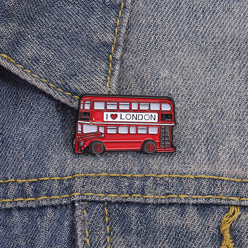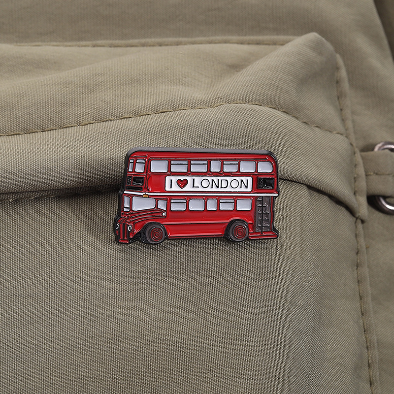 Custom Zinc Alloy Badge Creative London Landmark Cartoon Pin Red Double-Decker Bus City Commemorativ