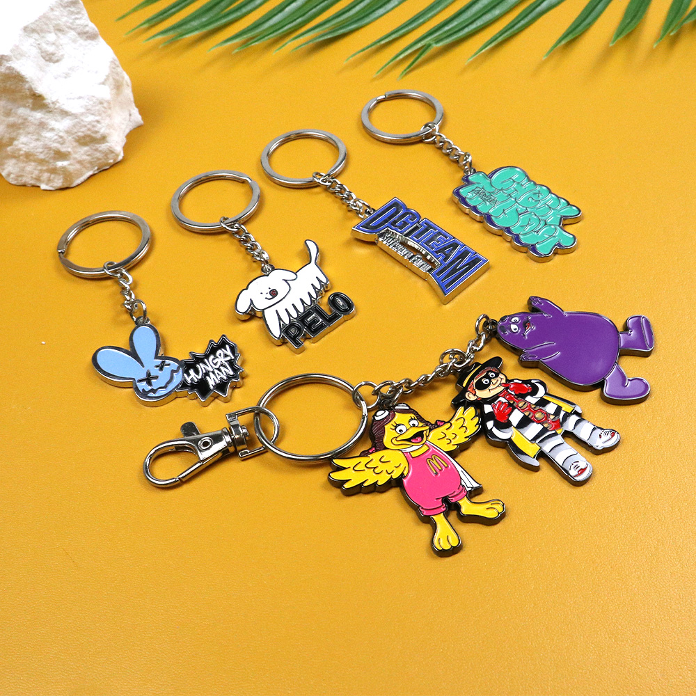 Custom Logo Luxury Vintage Cartoon Letterpress Printed Alloy Keychain-Lightweight Hard-Wearing Fashi