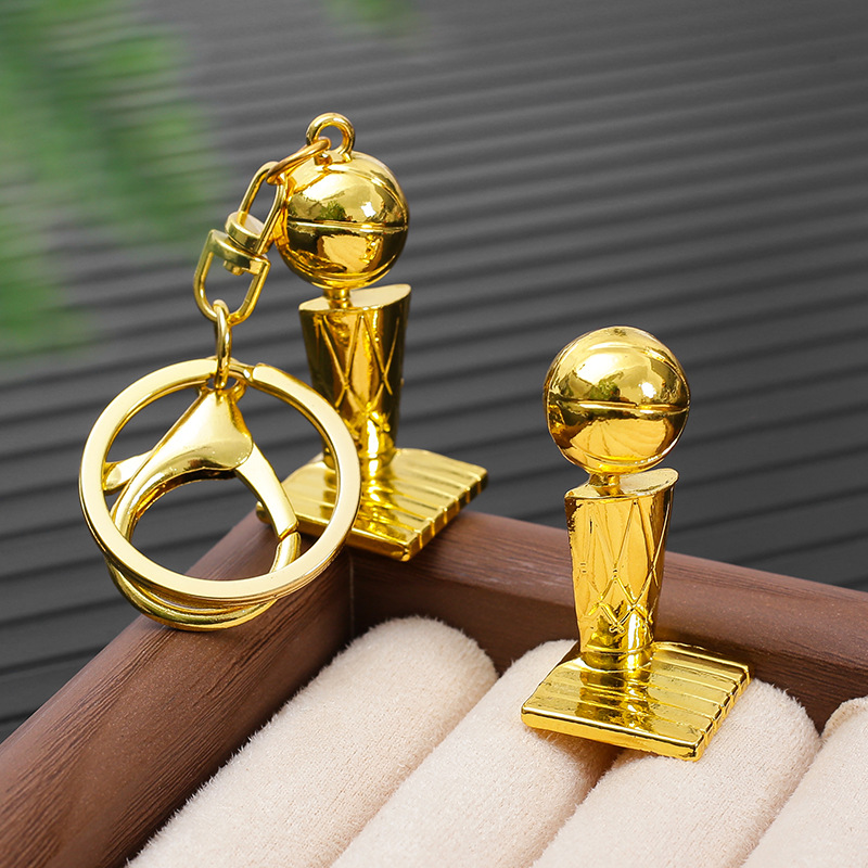 Customized Metal Keychain Basketball Game Trophy Ornament Gold Model Basketball Trophy Keychain Pend