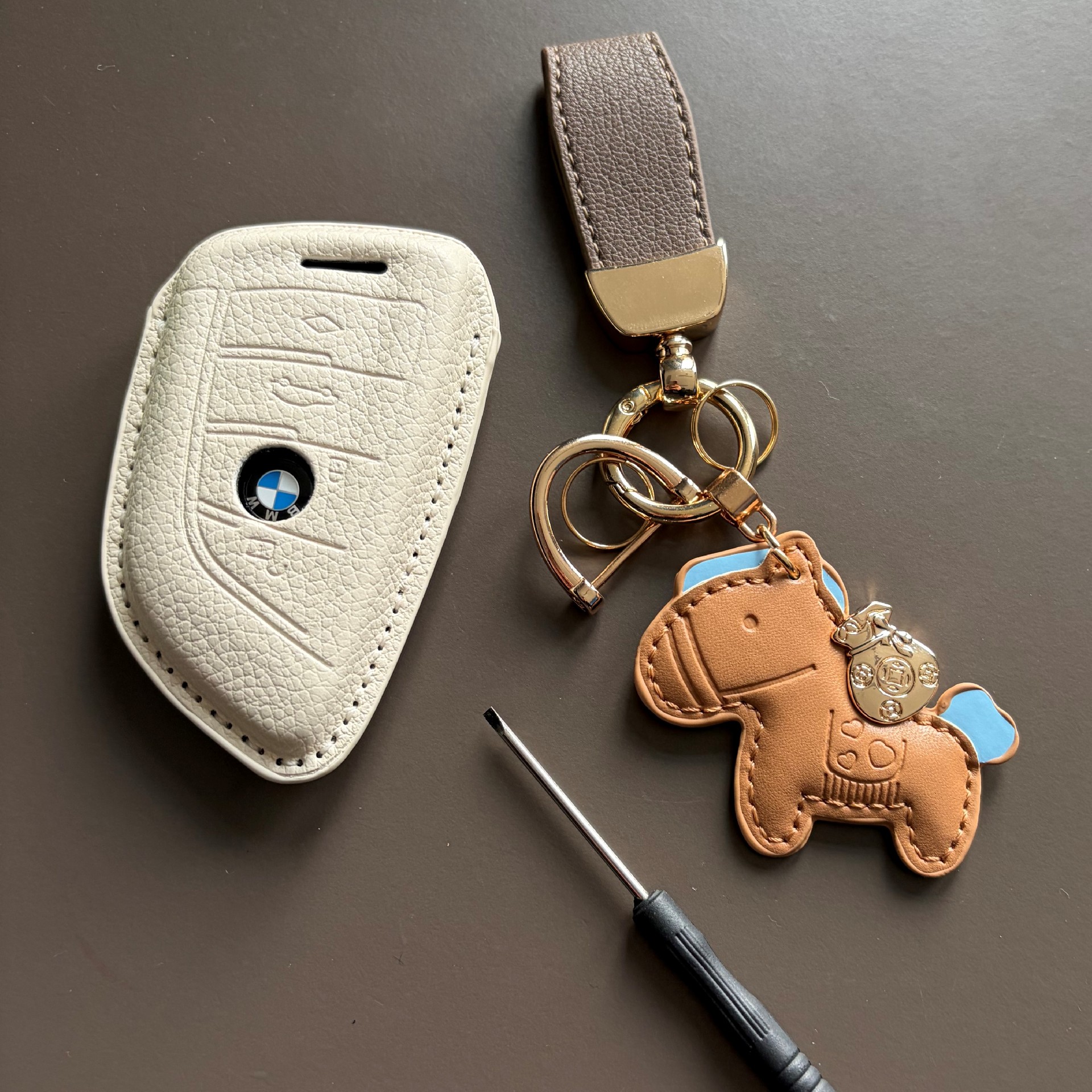 Money Horse Coming Custom Cartoon Vintage Fashion Metal Keychain with Leather Pendant Lightweight Ke