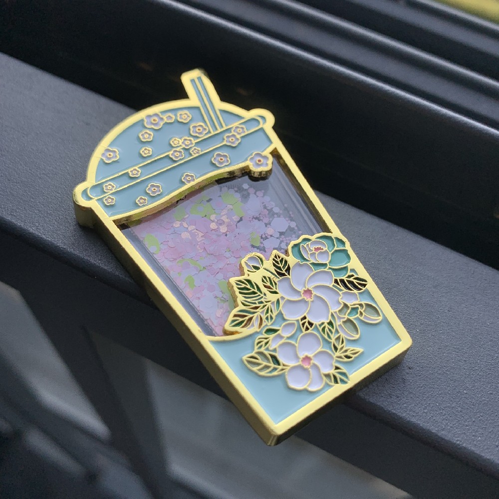 Customized Metal Quicksand Refrigerator Magnet Custom Acrylic Liquid Flow Badges Lapel Pins Literary