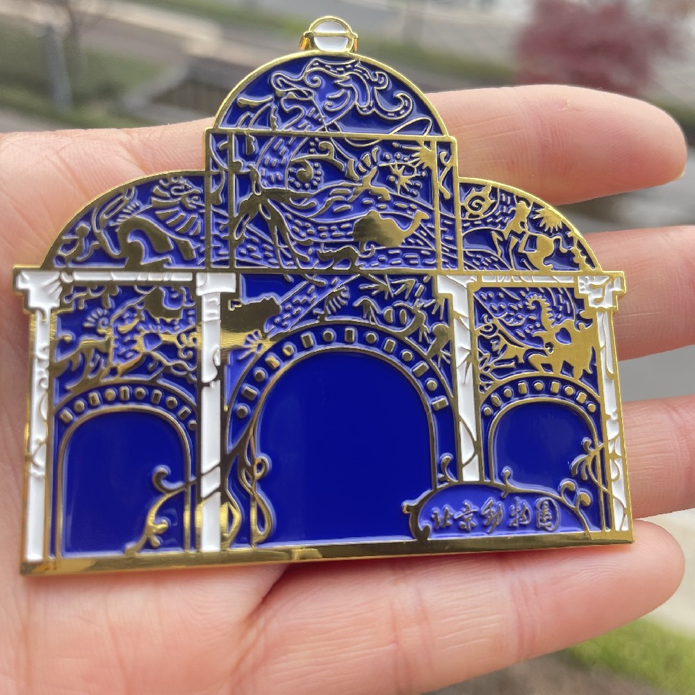 Customizable Chinese Style Gold Color Baking Paint Craft Metal Refrigerator Magnets Drip Glue Magnet