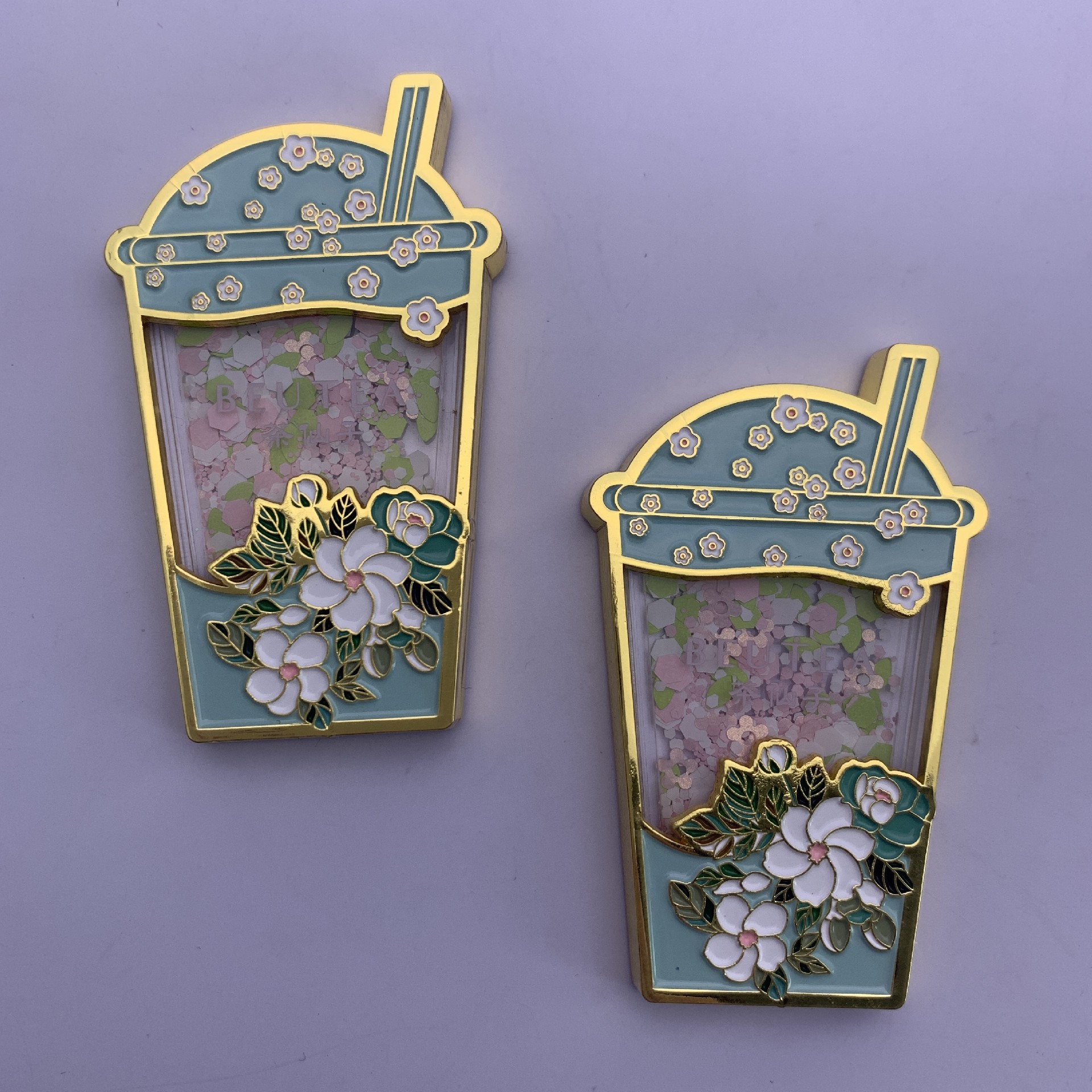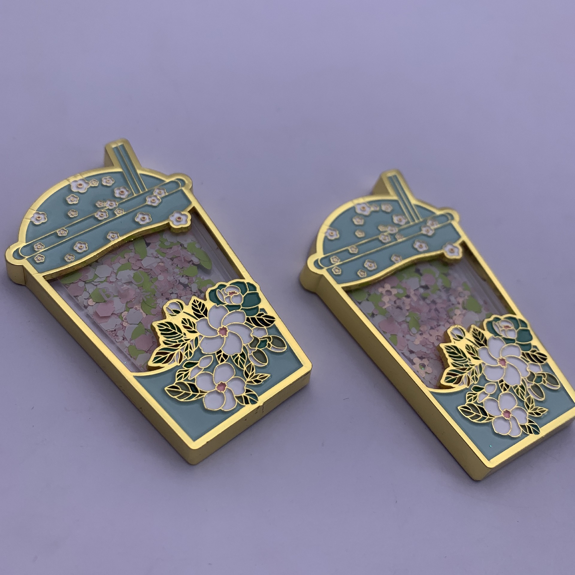 Customized Metal Quicksand Refrigerator Magnet Custom Acrylic Liquid Flow Badges Lapel Pins Literary