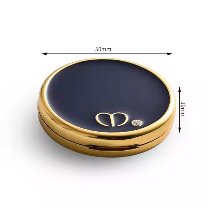 Double Gold Plated Soft Enamel Round Compact Pocket Mirror