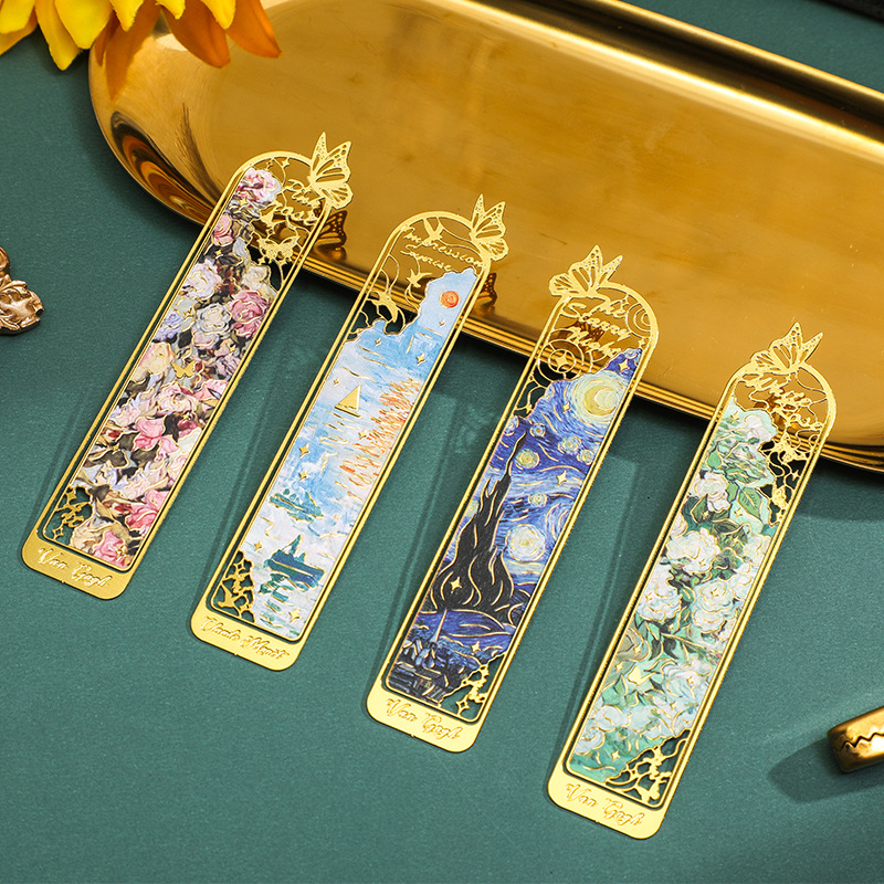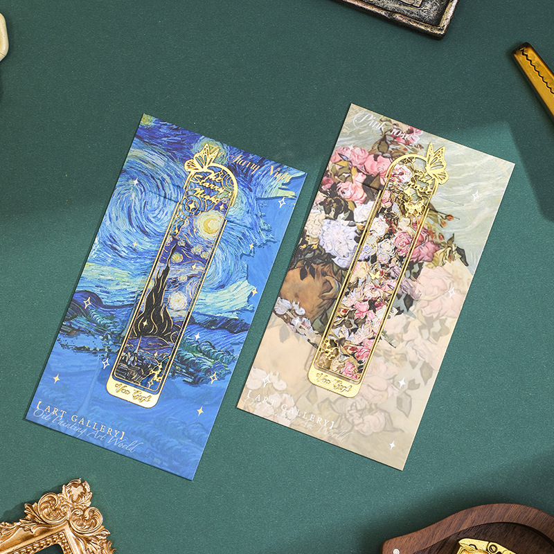 Custom Metal Bookmark Art Oil Painting Metal Bookmark Hollow-Cut Creative Reading Marker Decorative