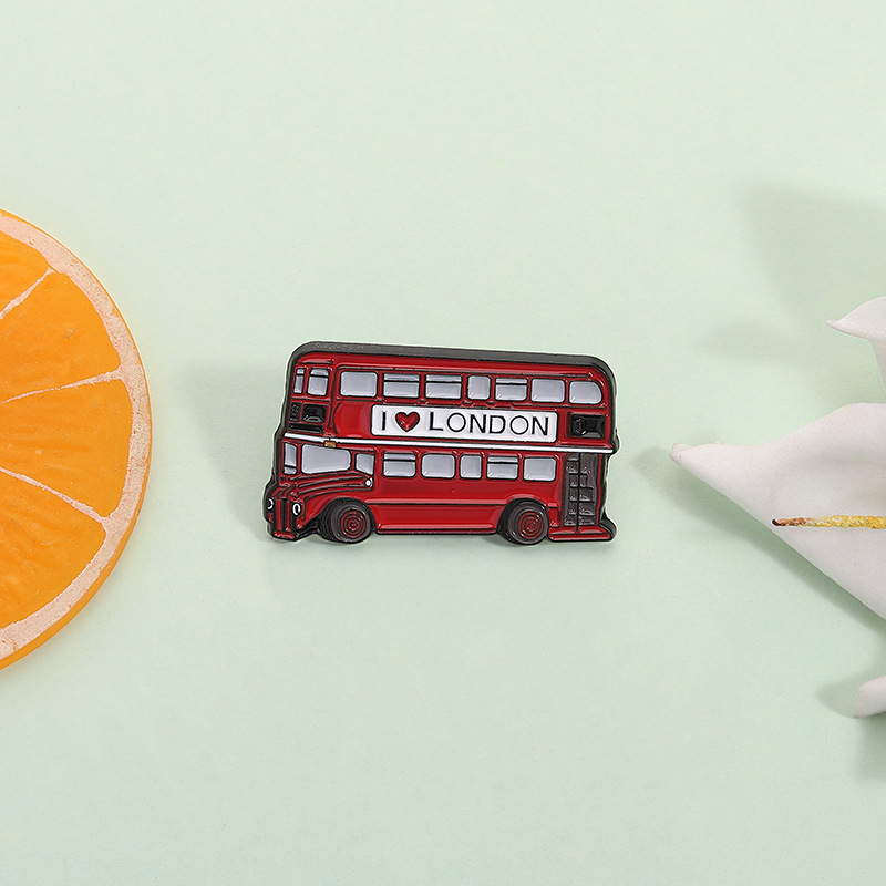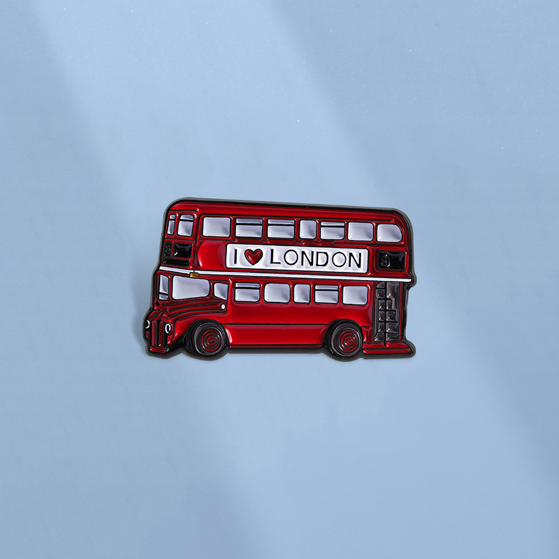 Custom Zinc Alloy Badge Creative London Landmark Cartoon Pin Red Double-Decker Bus City Commemorativ
