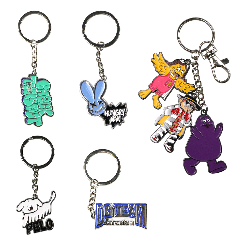 Custom Logo Luxury Vintage Cartoon Letterpress Printed Alloy Keychain-Lightweight Hard-Wearing Fashi