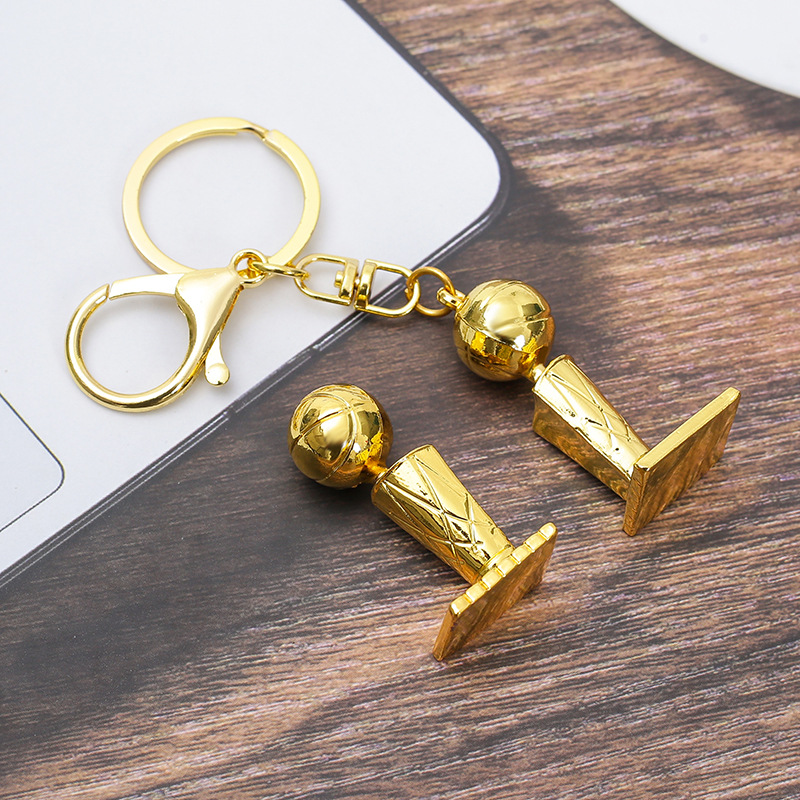 Customized Metal Keychain Basketball Game Trophy Ornament Gold Model Basketball Trophy Keychain Pend
