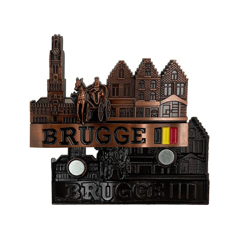 Customizable Metal Zinc Alloy Fridge Magnet Art Deco Style Tourist Souvenir Brugge Unique Customizab