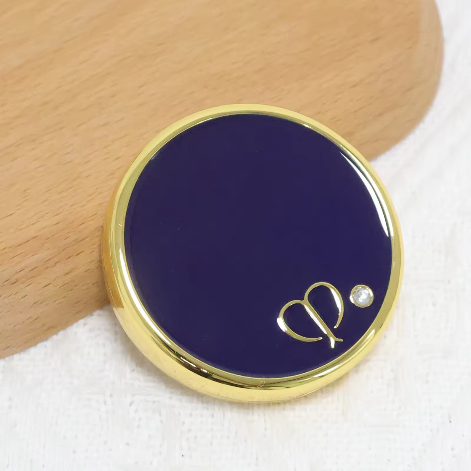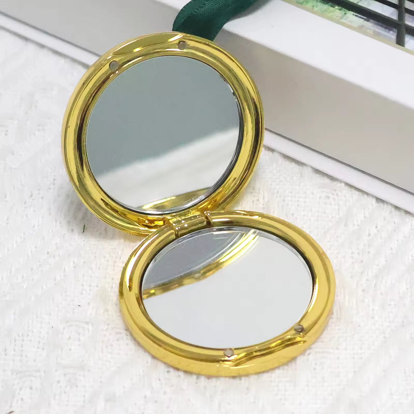 Double Gold Plated Soft Enamel Round Compact Pocket Mirror